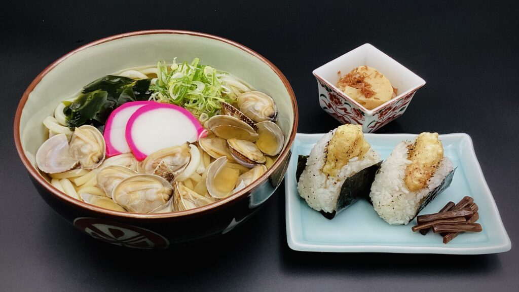 あさりうどんと天むす